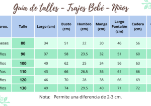 GUÍA DE TALLES Showing all 2 results Orden predeterminado Ordenar por popularidad Ordenar por los últimos Ordenar por precio: bajo a alto Ordenar por precio: alto a bajo GUÍA DE TALLES BEBÉS Y NIÑAS Leer más GUÍA DE TALLES TRAJE VARÓN Leer más