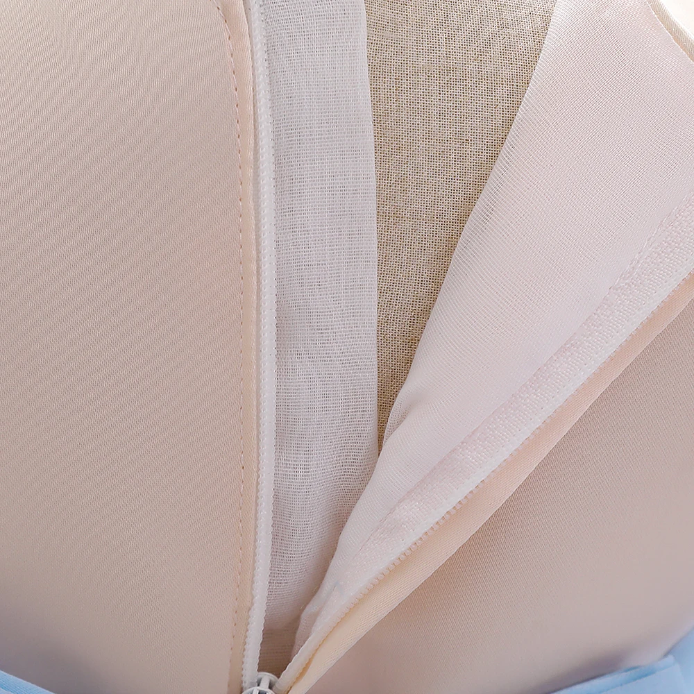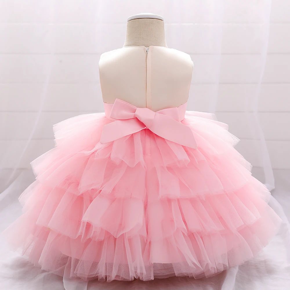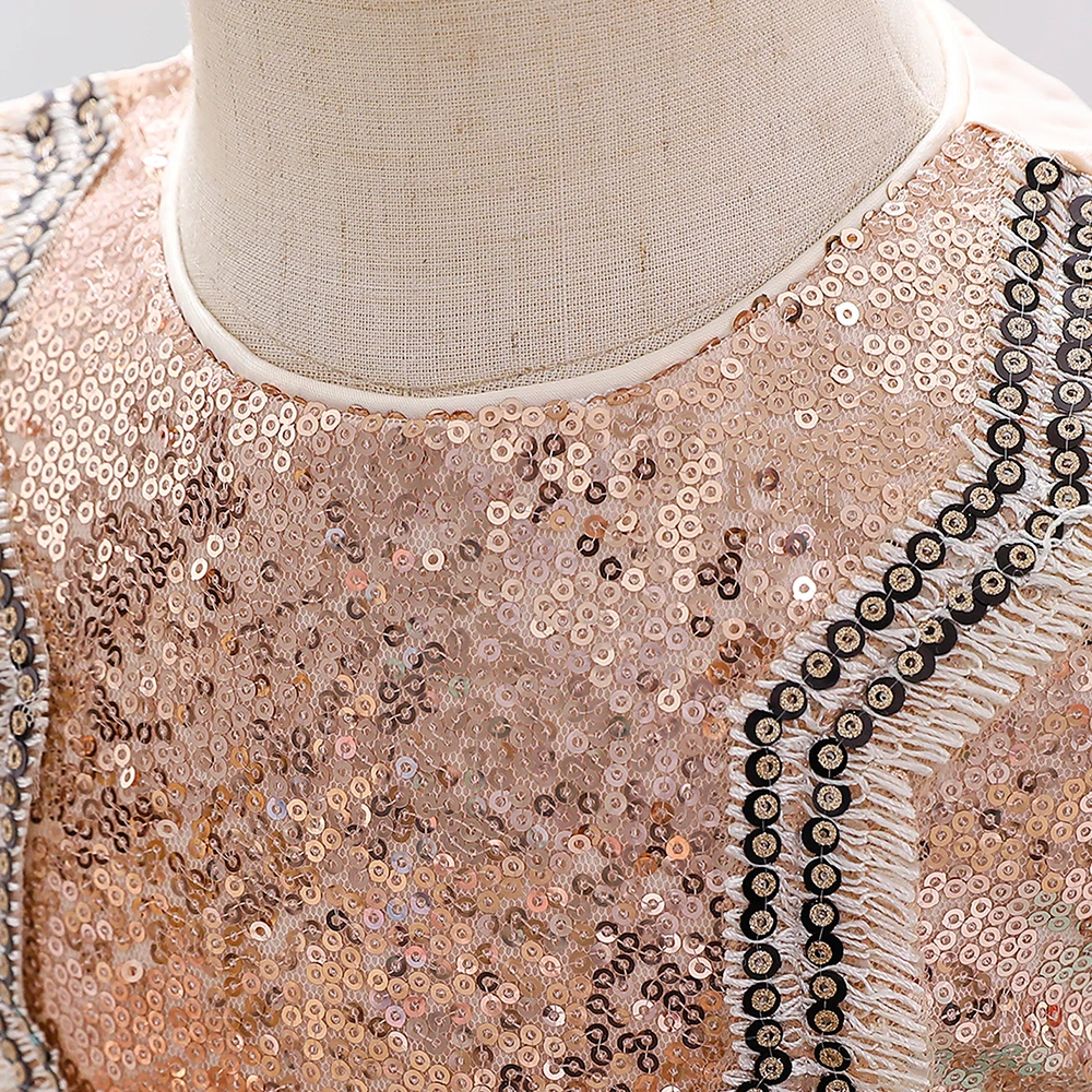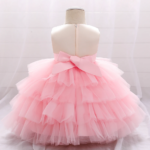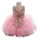 Elegante diseño con un frente bañado en lentejuelas doradas de alto brillo y una falda de tul celeste con volantes escalonados 👗✨. El gran lazo central añade un toque de sofisticación clásica, ideal para eventos exclusivos y celebraciones especiales 🎀🌟